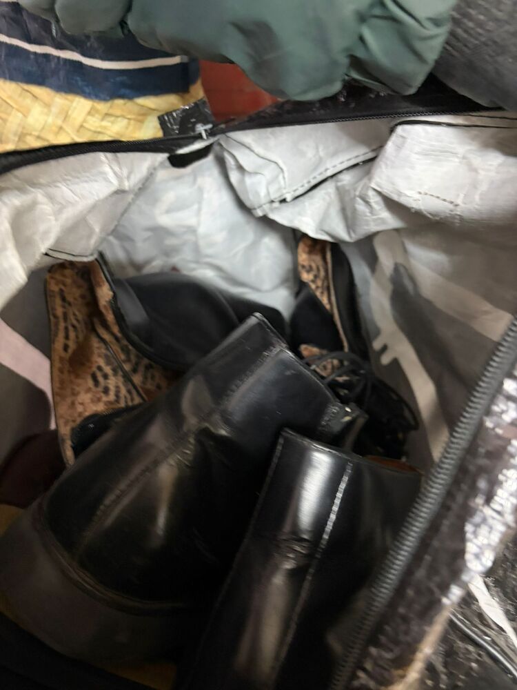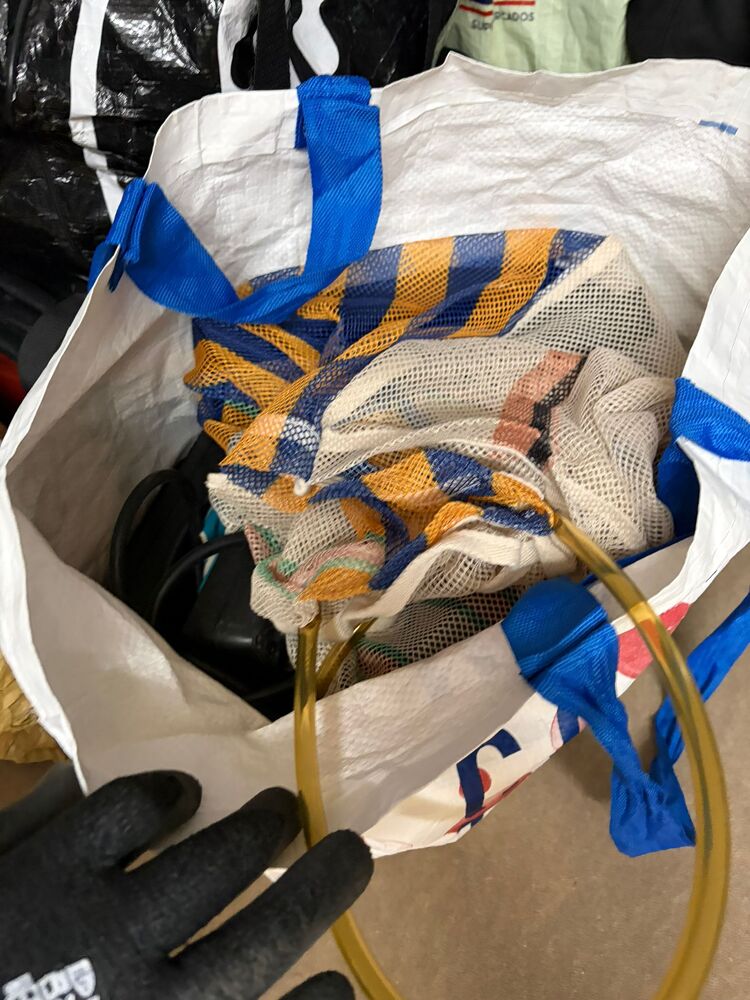 Trastero con varias bolsas (contiene objetos musicales y de colección)