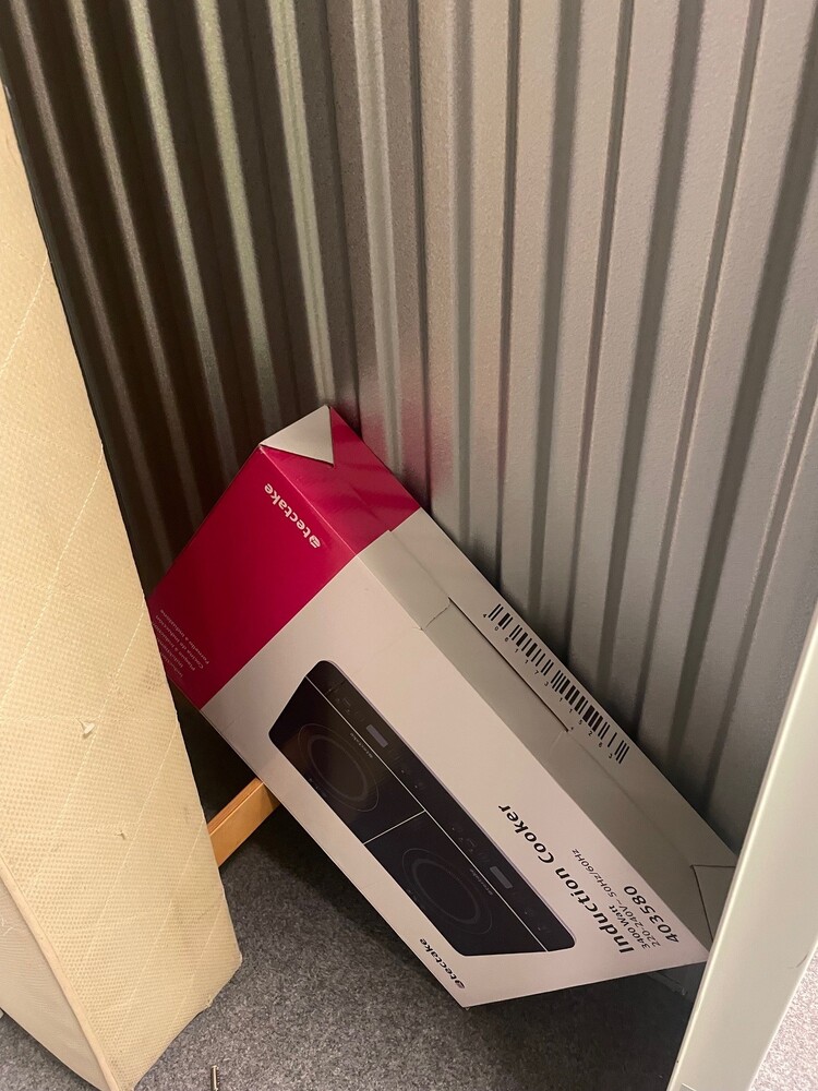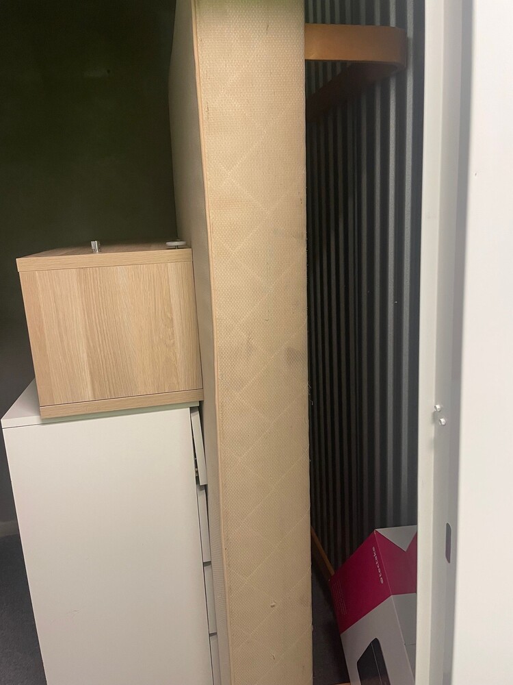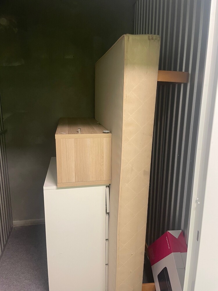 Forladt opbevaringsrum på 3 m2. Se billeder for detaljer. Vi har ikke gennemgået noget grundigt, kun åbnet rummet for at tage billeder.