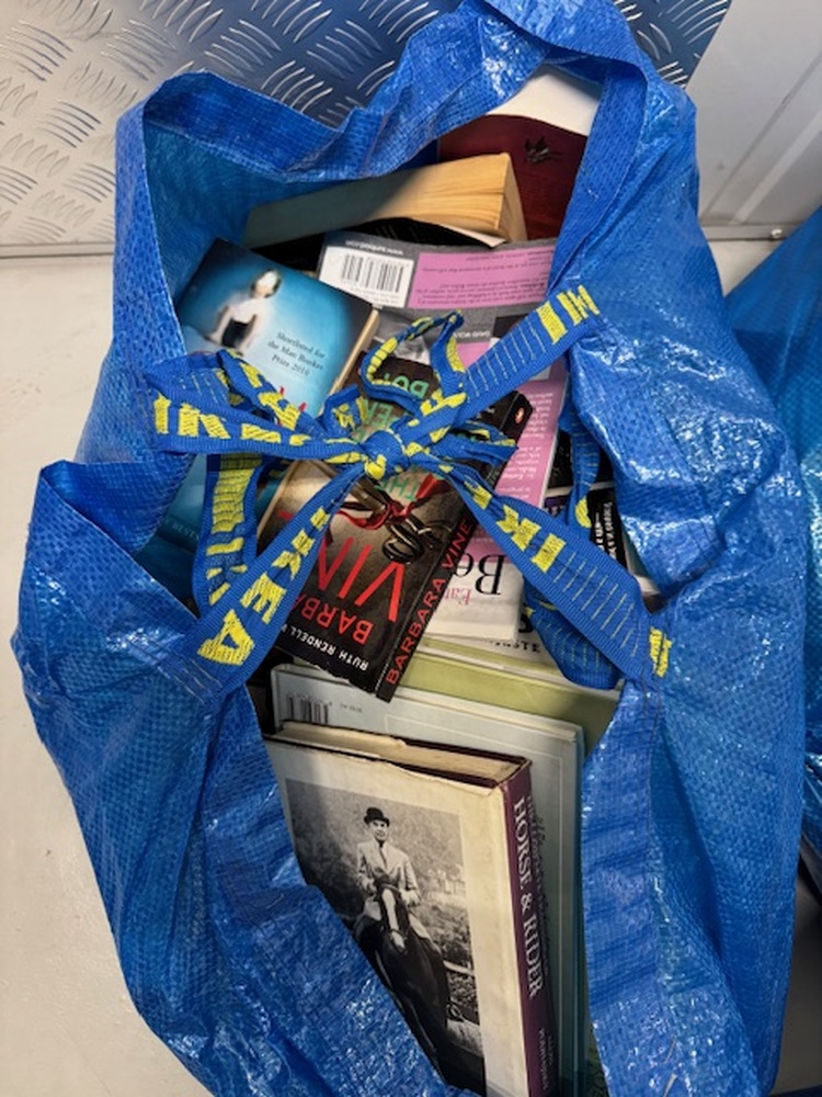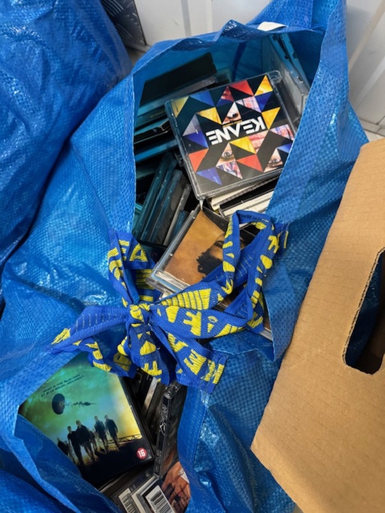Weegschaal,kleding,dvd\'s,cd\'s, boeken,kleding,koffer,keukengerei,keukenapparatuur en een tijdschriften rek