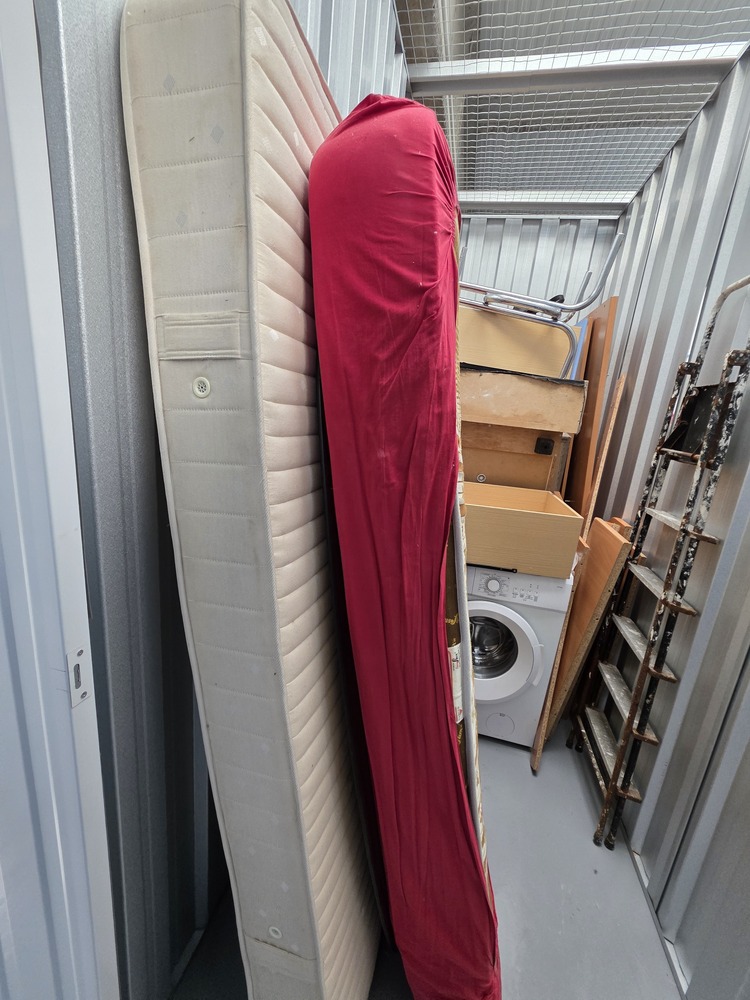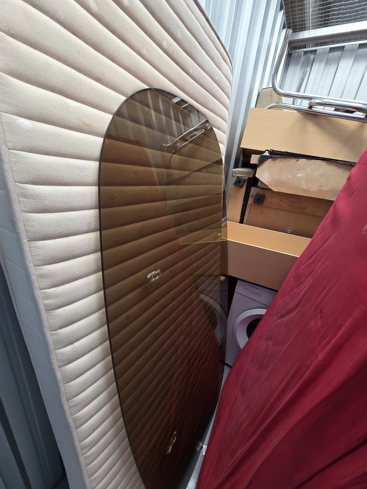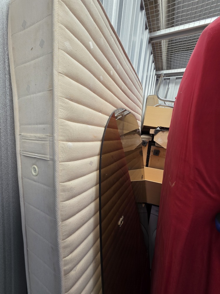 Unidade com colchões, mesa de vidro, máquina de lavar e móveis diversos, podendo conter outros itens entre os volumes. Excelente oportunidade em leilão! Unit with mattresses, a glass table, washing machine and assorted furniture and may contain additional items between the packed goods. Great auction opportunity!
