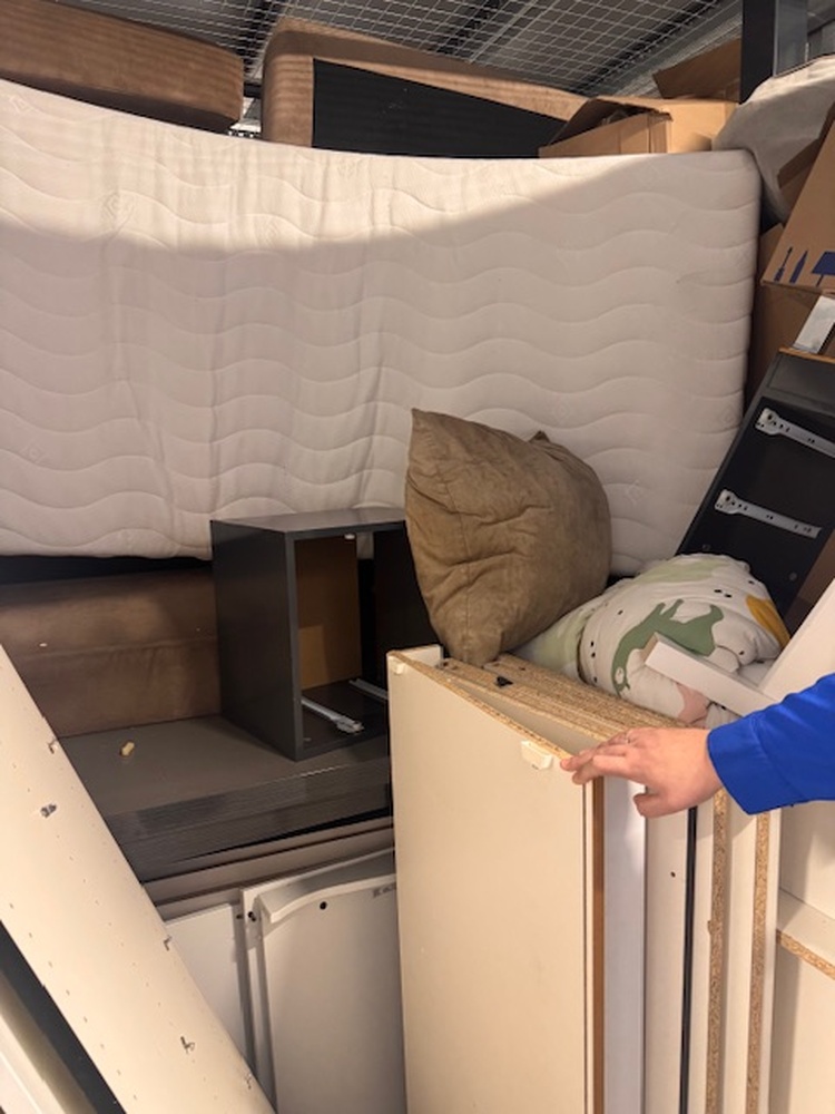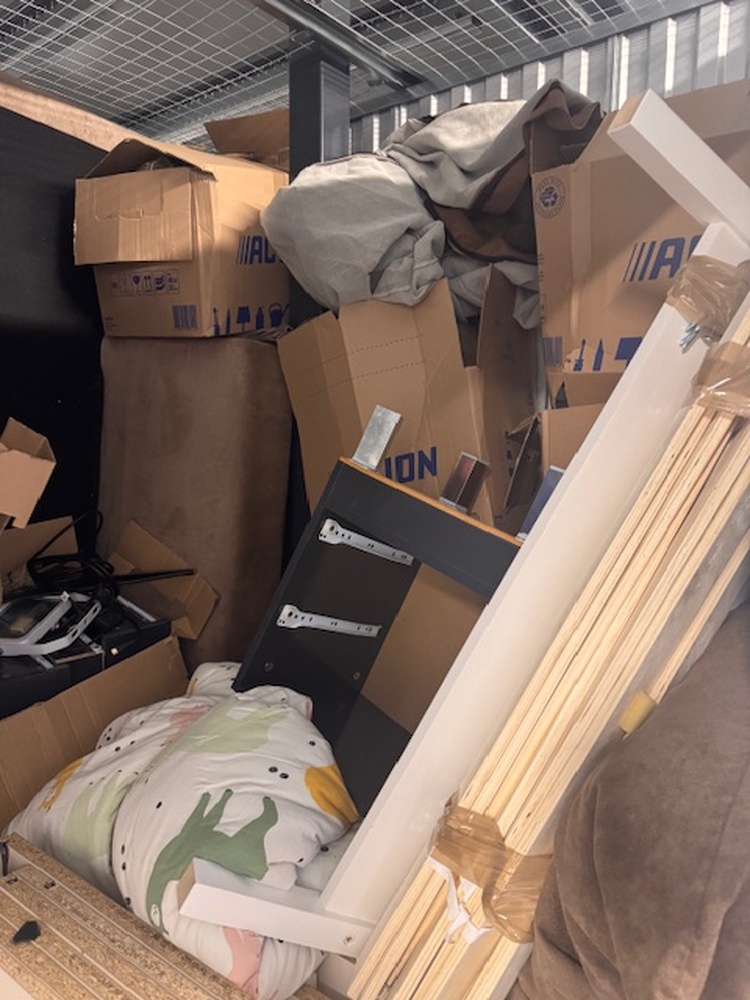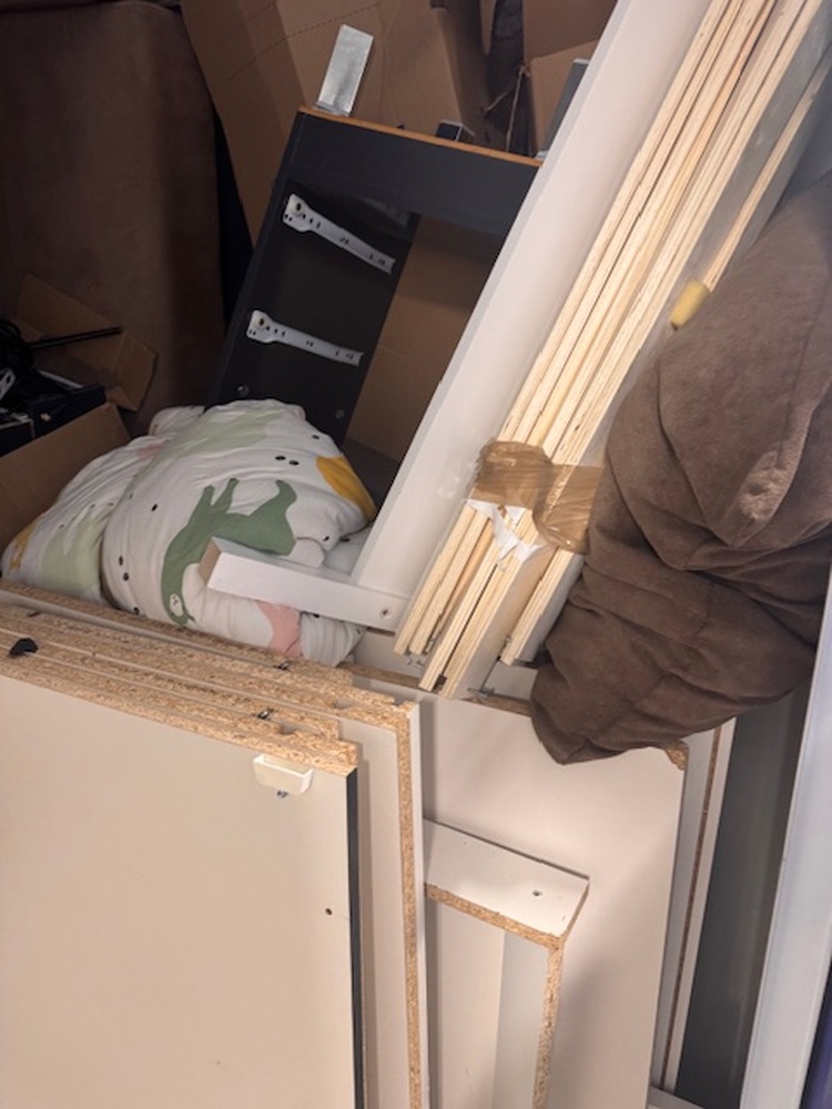 Diverse dingen: - Wasmachine - Grote bank - Bed frame - Dozen - Speelgoed kind - Laden (denk van kasten) - Planken (van kasten)