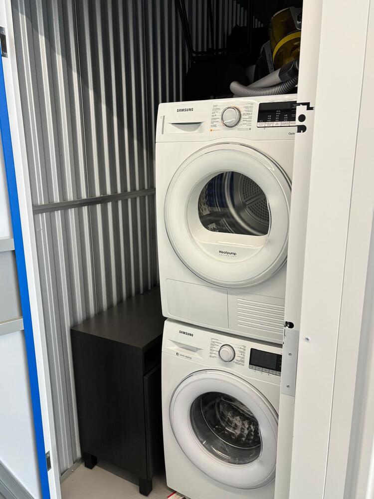 stofzuiger - wasmachine - droogkast - kartonnen dozen - stoel - kapstok - vuilbak - lattenbodem - kast