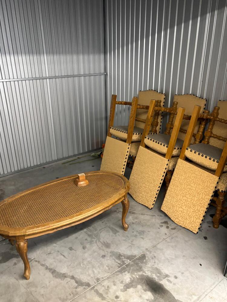 kruiwagen - tafeltje - kasten - dozen - stoelen - tafel - hout