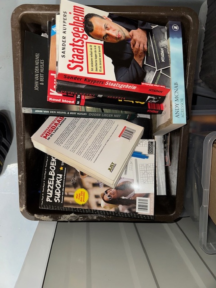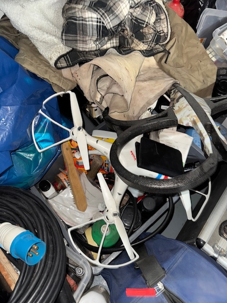 Helm, boeken, gereedschap, drone, wasmachine, VR bril, kleding, schaatsen en een neuswiel