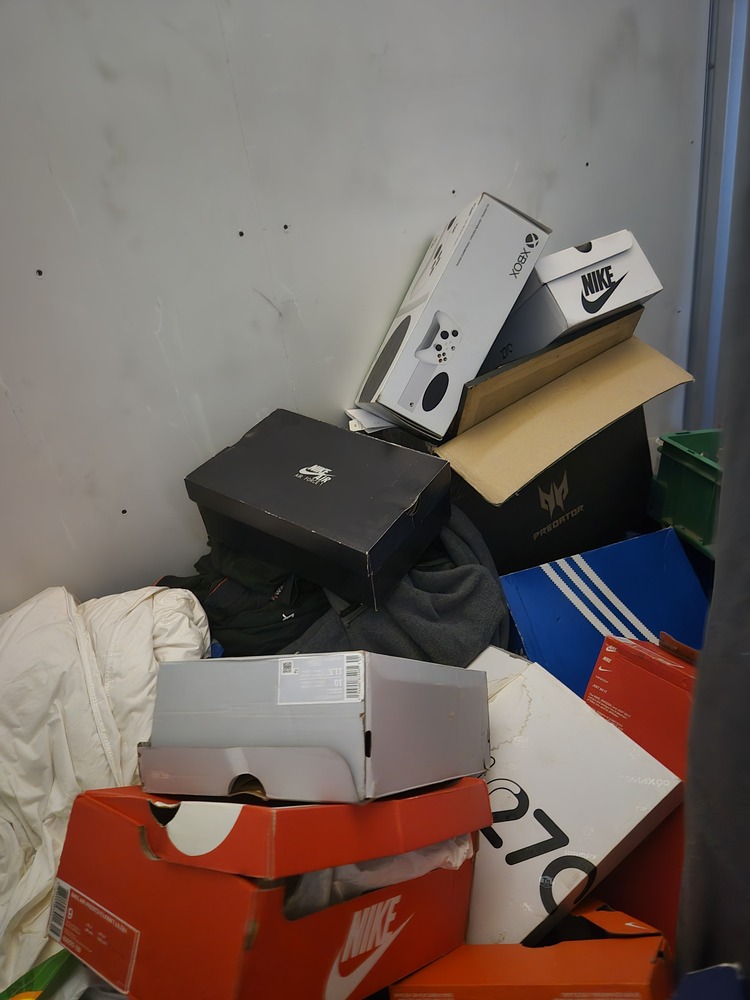 schoenen in doos, treinen, gereedschap, collectors items en diverse andere spulletjes