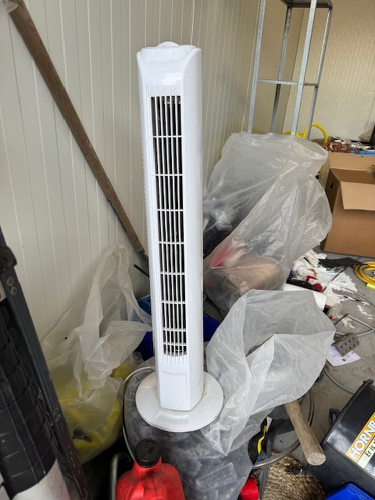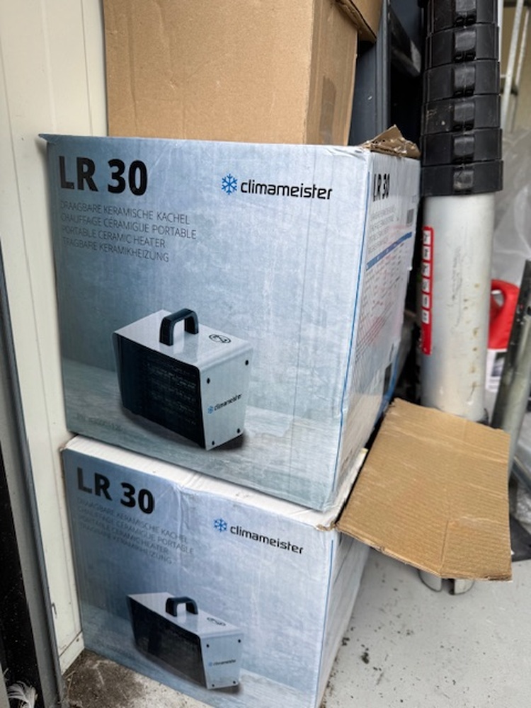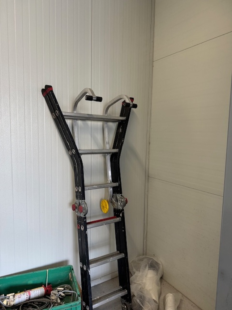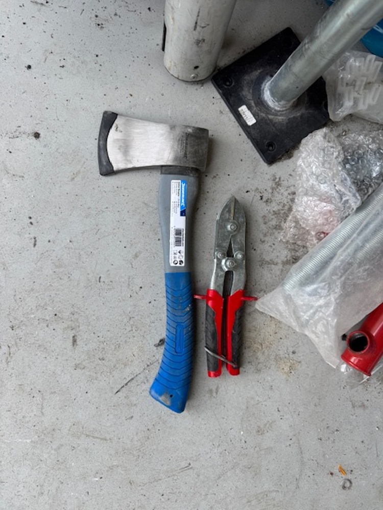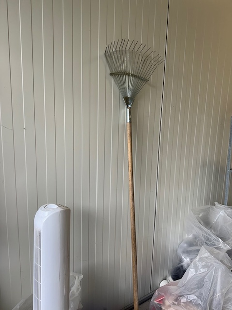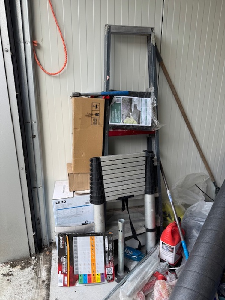 Ladders, draagbare kachel,bladhark, ventilator, bijl en folding square