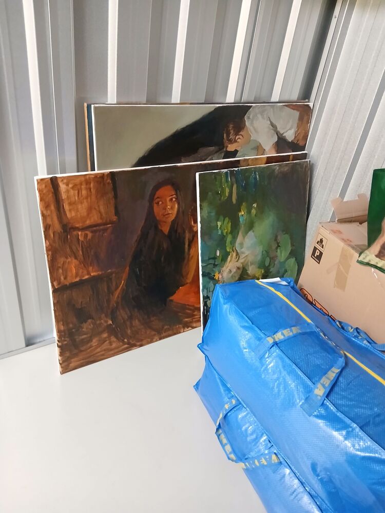 mehrere Bilder (Malerei Portraits, Landschaften, etc.) mehrere Beutel, mehrere Kartons several pictures (paintings, portraits, landscapes, etc.) several bags, several boxes