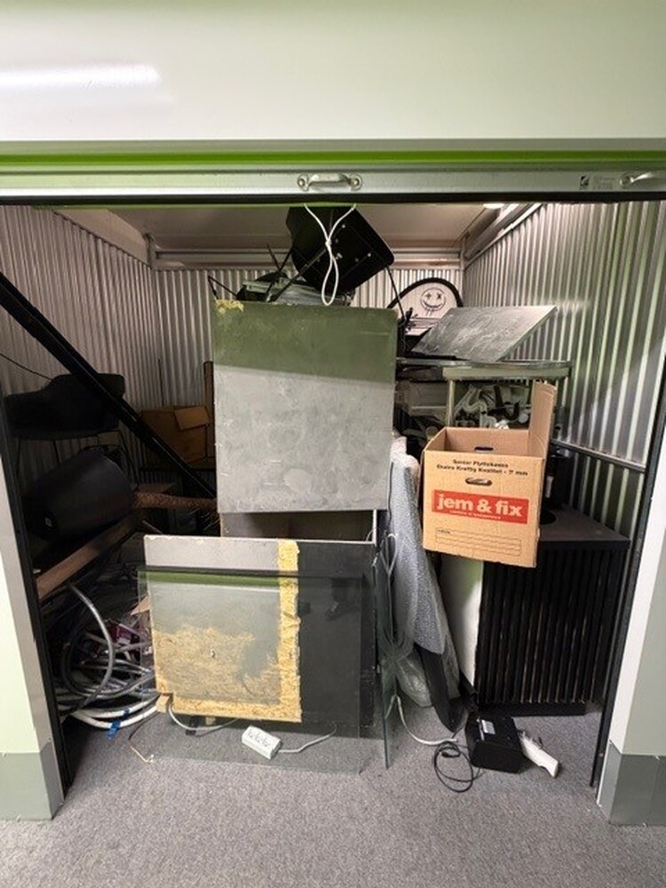 Forladte ting i opbevaringsrum på 9m2. Se billeder for detaljer. Vi har ikke gennemgået noget grundigt, kun åbnet rummet for at tage billeder. Denne auktion kan aflyses uden varsel op til 12 timer inden afslutning, hvis kunden henvender sig og gør krav på sine ejendele ved betaling.