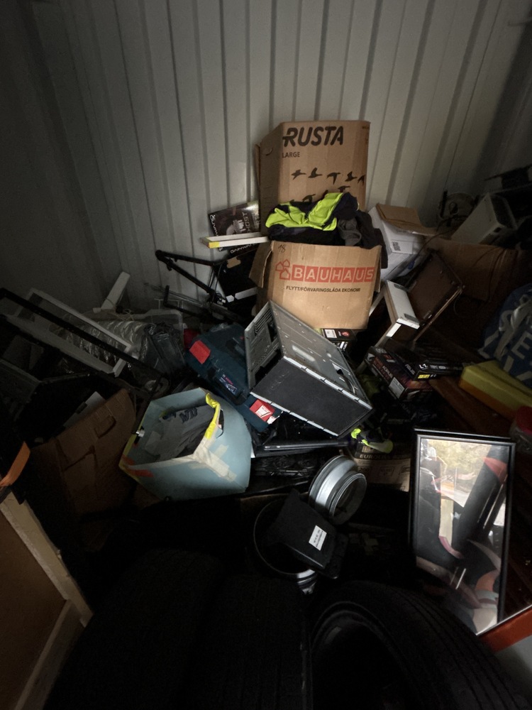 Övergivet förvaringsutrymme på 14 m2. Förvaringsutrymmet är endast öppnat för att ta bilder. Vinnaren kontaktar säljare via mail direkt efter vunnen auktion. Kortinformation lämnas i samband med kontakt efter vunnen auktion och deposition reserveras på vinnarens konto. Vinnaren har tre dagar på sig att tömma förrådet helt. All information om förrådet samt in-/utpassering skickas till vinnaren efter betald deposition.