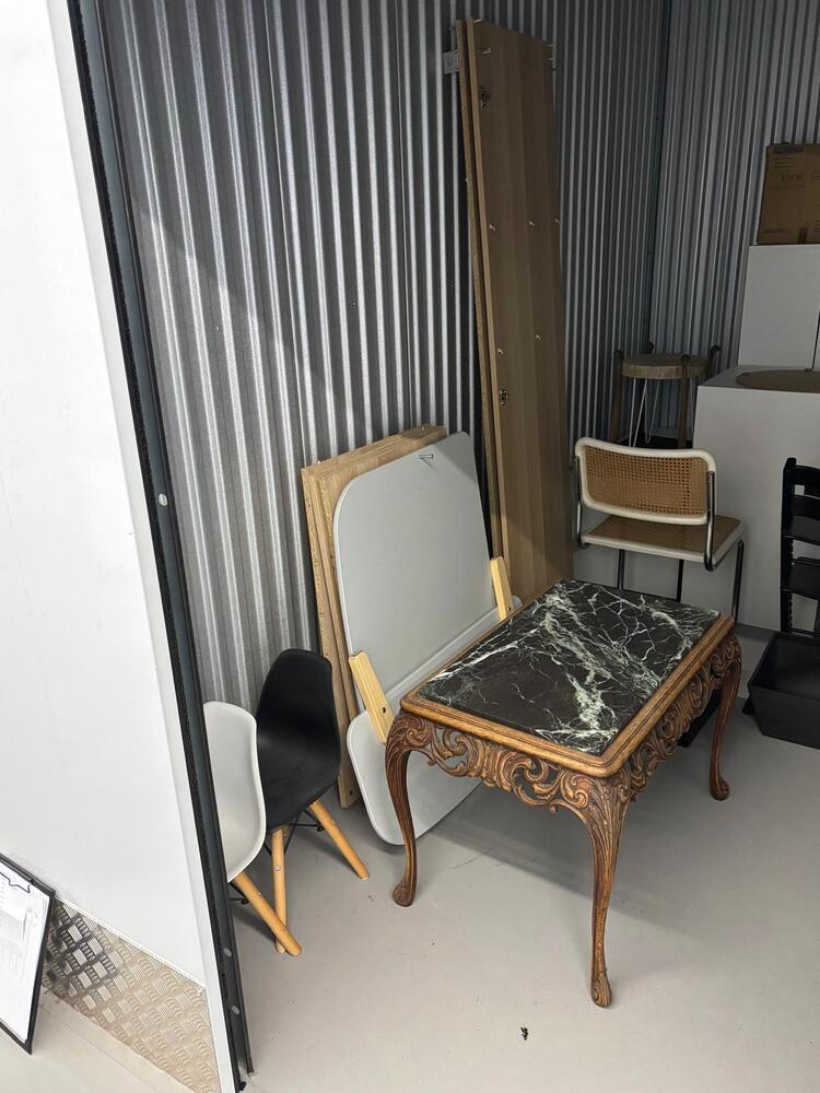 stoelen - kasten - dozen - hout - salontafel (meubilair)