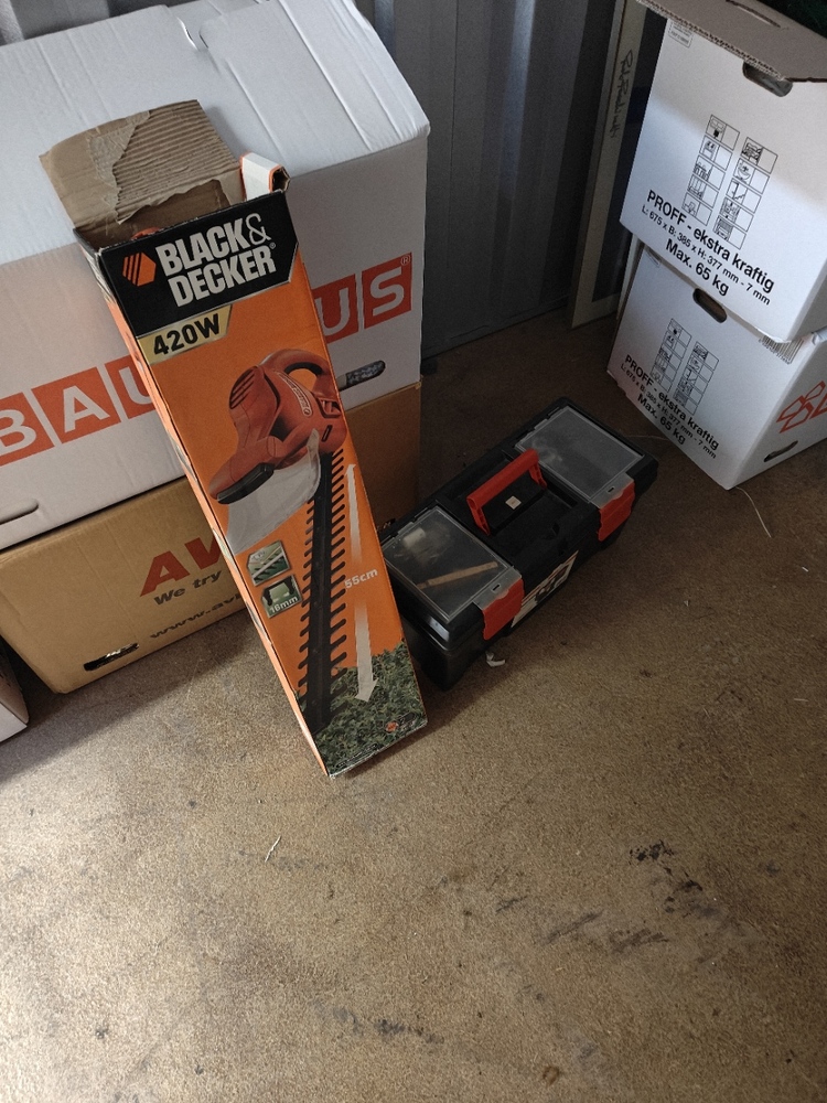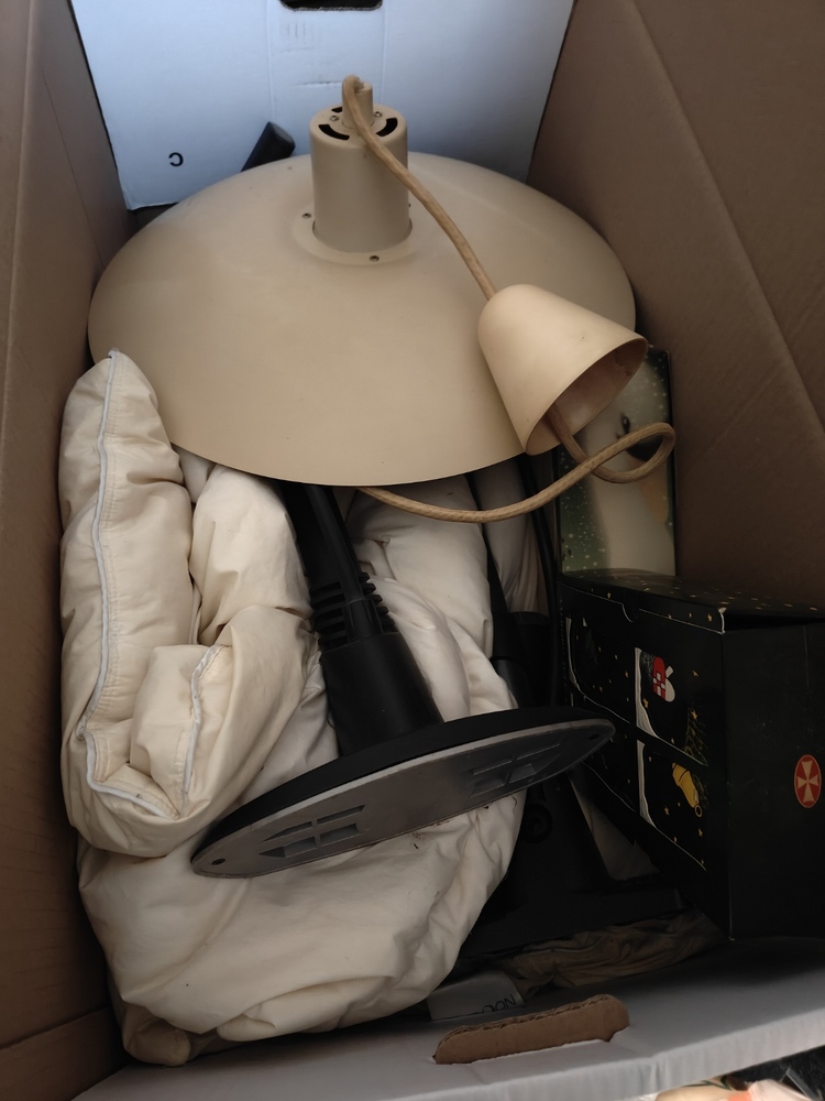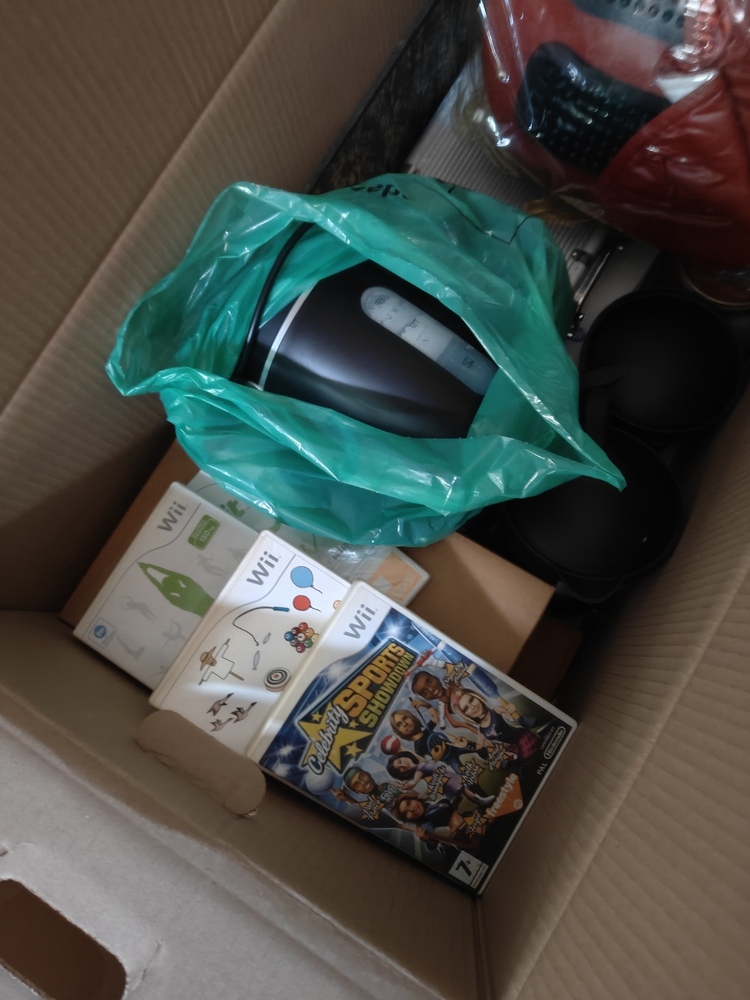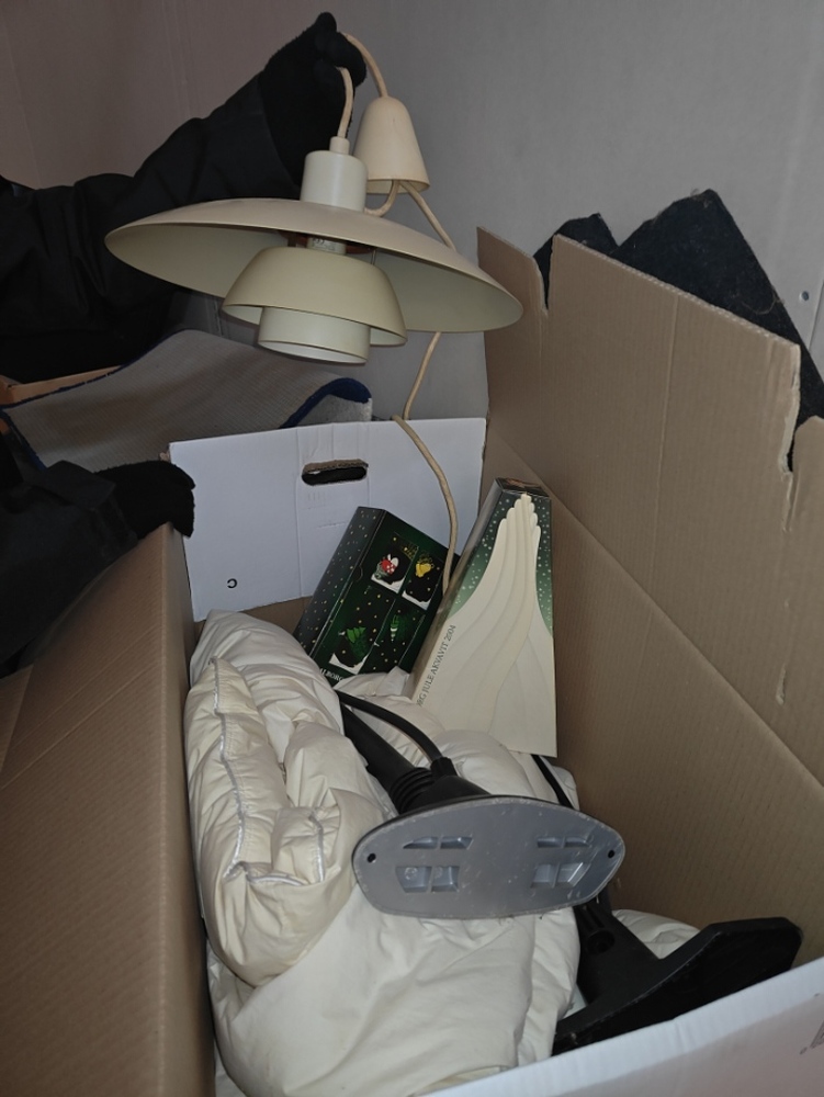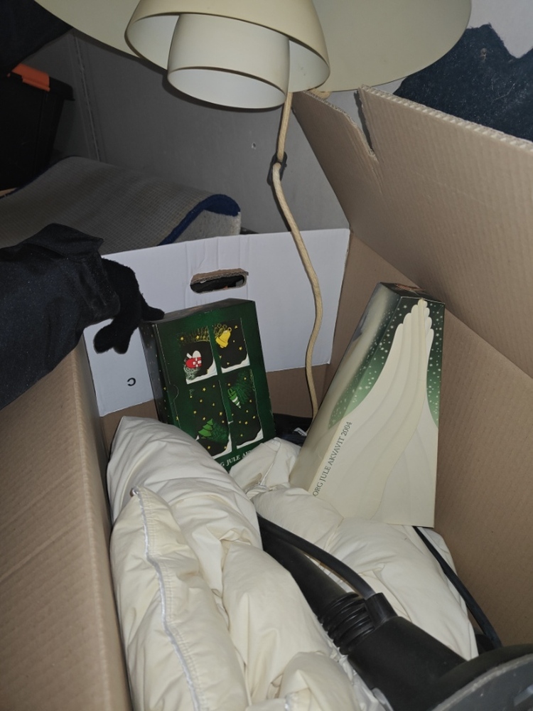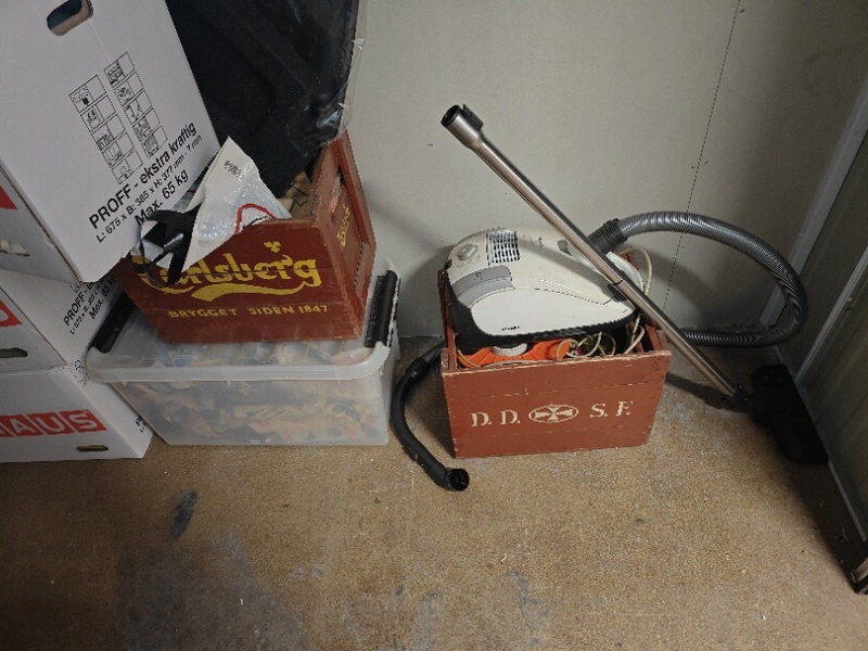 Ph-lampe, Årgangs-snapse, Black & Decker El-hækklipper, Diverse Wii-spil, el-kedel, Wii Sports Pack Extra, Støvsuger. Træ øl-kasse Carlsberg og D. D. & S. F.