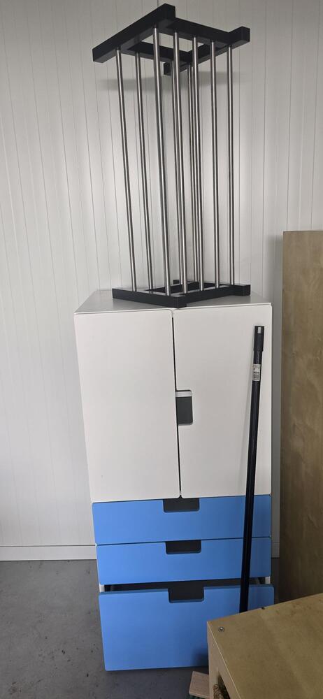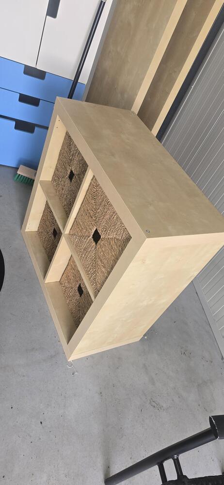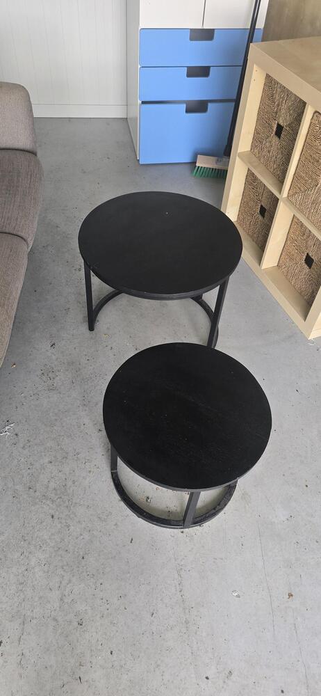1 bank met een tasje, samen met één van de drie tafels zoals zichtbaar op de foto 2 extra kleine tafeltjes Kastenset met 4 lades Grote rechthoekige tafel Tuinstoel.
