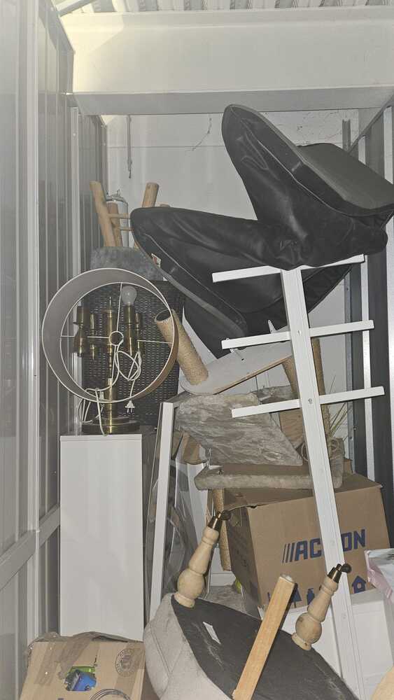Hey der Sichtung der Box wurden folgende Gegenstände festgestellt: - ein großes Sofa mehrteilig - ein Echtholztisch - mehrere Kartons (10 Stück) - Küchenuntensilien - eine Waschmaschine von Siemens - verschieden Lampen und Spiegel - 2 gepolsterte Stühle - ein Fernseher - 6x Sichtschutz (Rollo) - ein Geschirrspüler - ein Katzenkratzbaum