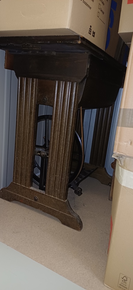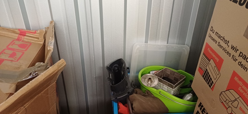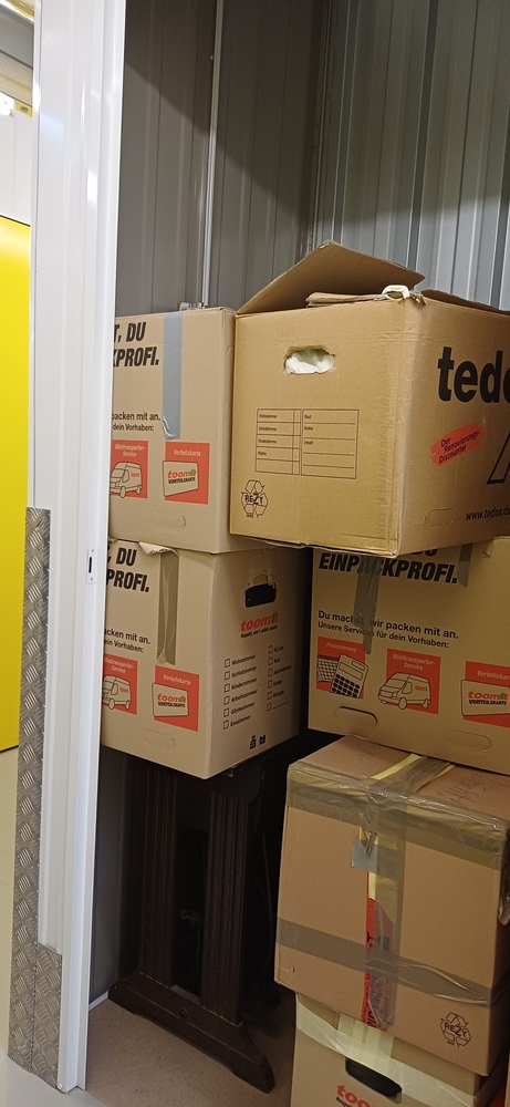 Hey der Sichtung der Box wurden folgende Gegenstände festgestellt: - etwa 10 Kartons - eine alte Nähmaschine - Holzgestell - ein kleines Regal