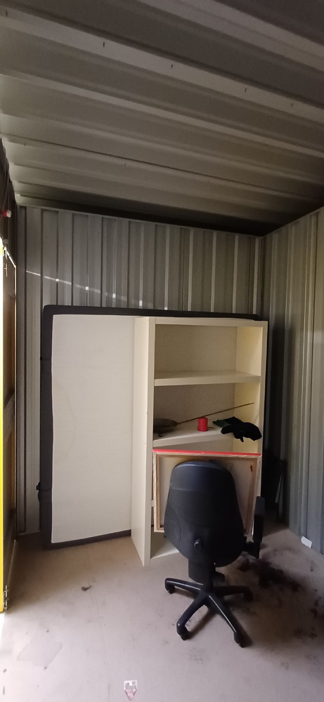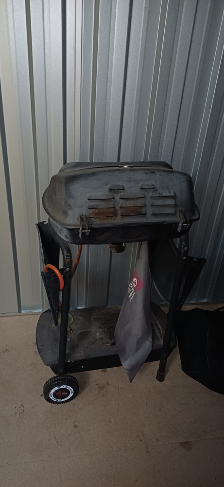 Hey der Sichtung der Box wurden folgende Gegenstände festgestellt: - ein kleiner Gasgrill - eine Matratze - ein Regal - ein Badunterschrank - ein Drehstuhl