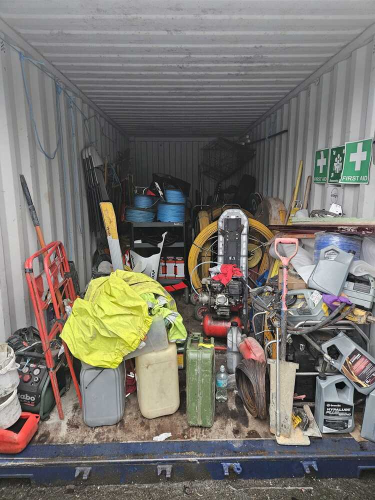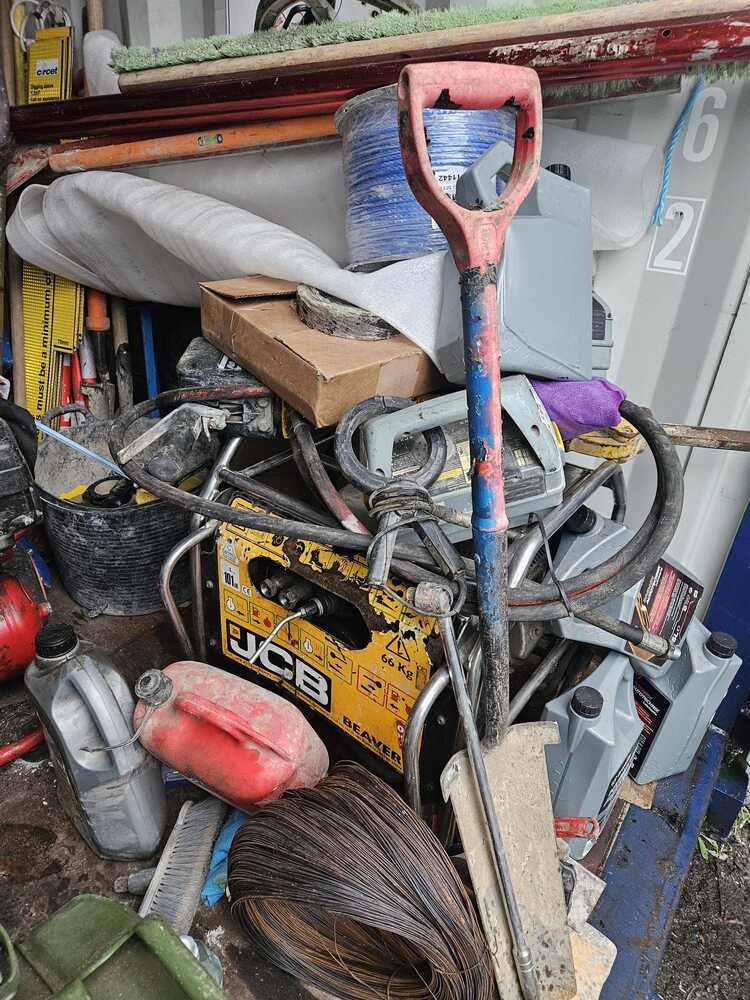 Unit filled with industrial stuff such as cables, JCB Beaver Hydraulic Power Pack 66kg(cannot confirm if this works), chairs, tool boxes and much more.