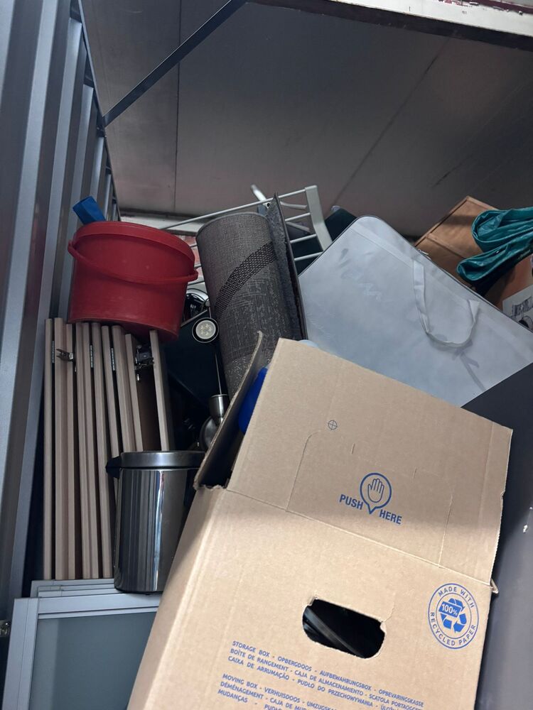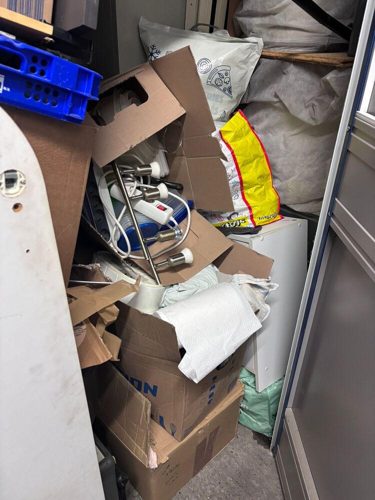 Grote unit Keukenspullen, stekkerblokken, matras, verschillende armaturen, stoel, vuilbak,...