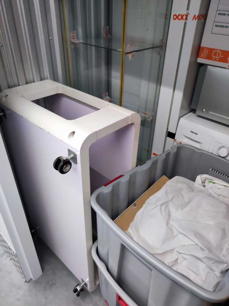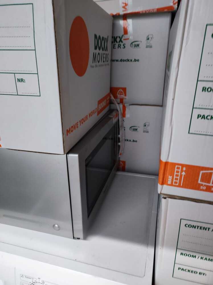 wasmachine - lattenbodem - plastic bakken - houten tafel - microgolf - vitrinekast