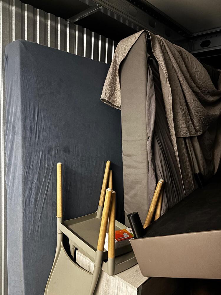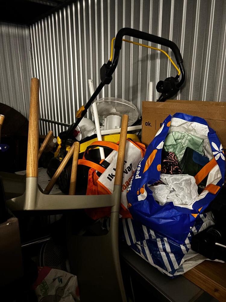 Zetel, stoelen, grasmaaier, keukenaanrecht, matrassen, huishoudgerei, vakkenkast
