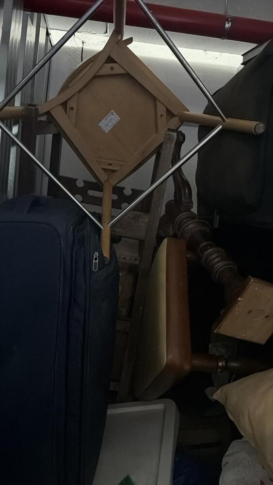 Trastero de 2m2 con mobiliario variado, incluye mesas de mármol, sillas, espejo, estanterías...