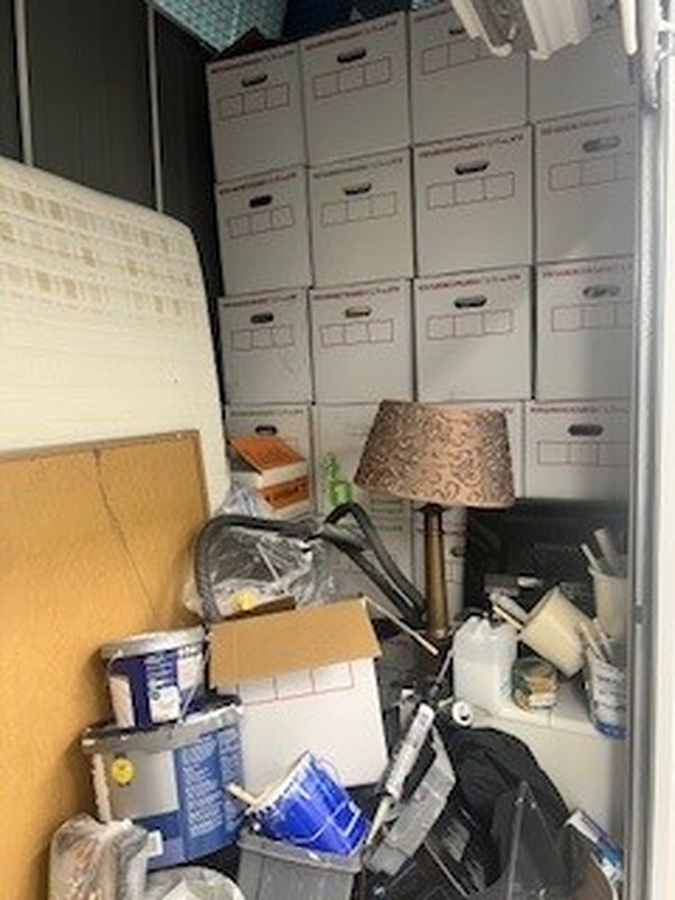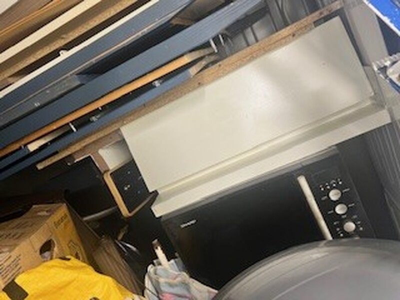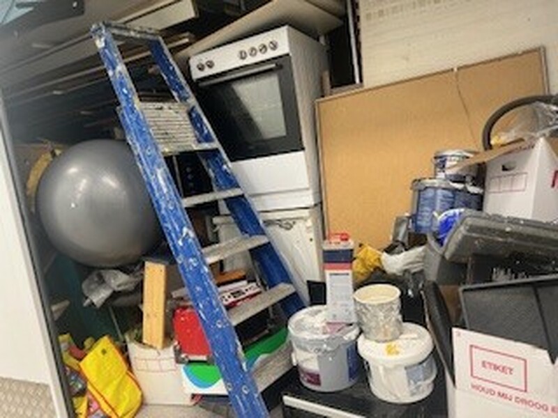 Ladder, gestapelde dozen (vol) oven, en veel meer spullen. Zie foto\'s voor meer info.
