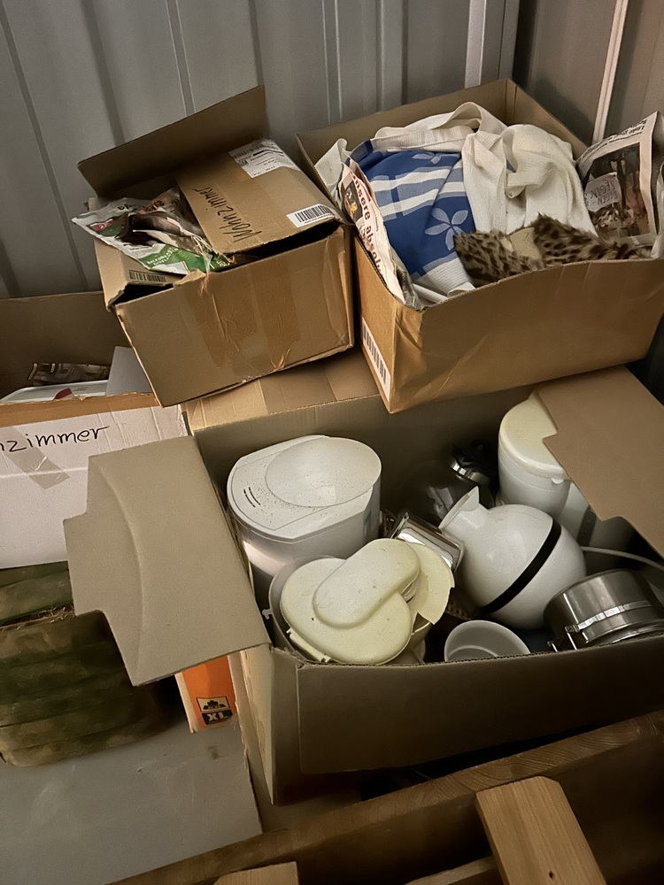 - Der Verkäufer stellt dem Käufer eine Kartonage für persönliche Gegenstände, die während der Räumung auftauchen, zur Verfügung. Diese werden dem Verkäufer nach der Räumung übergeben.