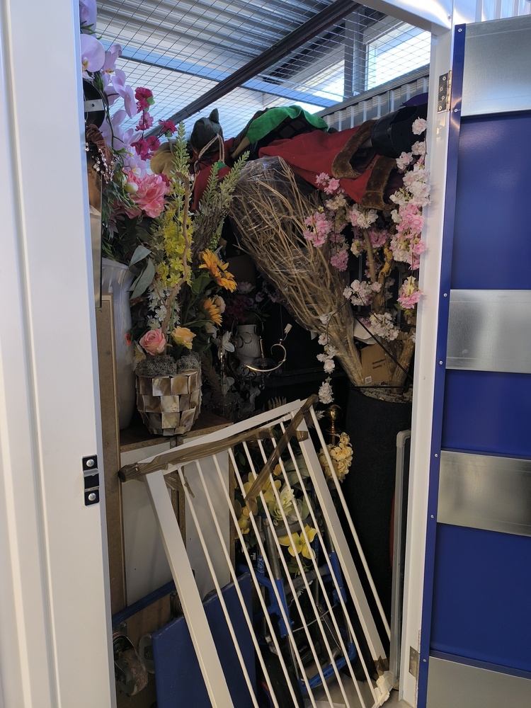 Opslagruimte van 8m2 vol met kunstbloemen, zie foto