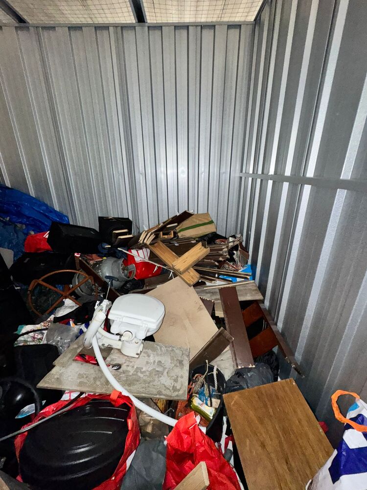Only the registered person who won the auction can pick up the storage unit contents.