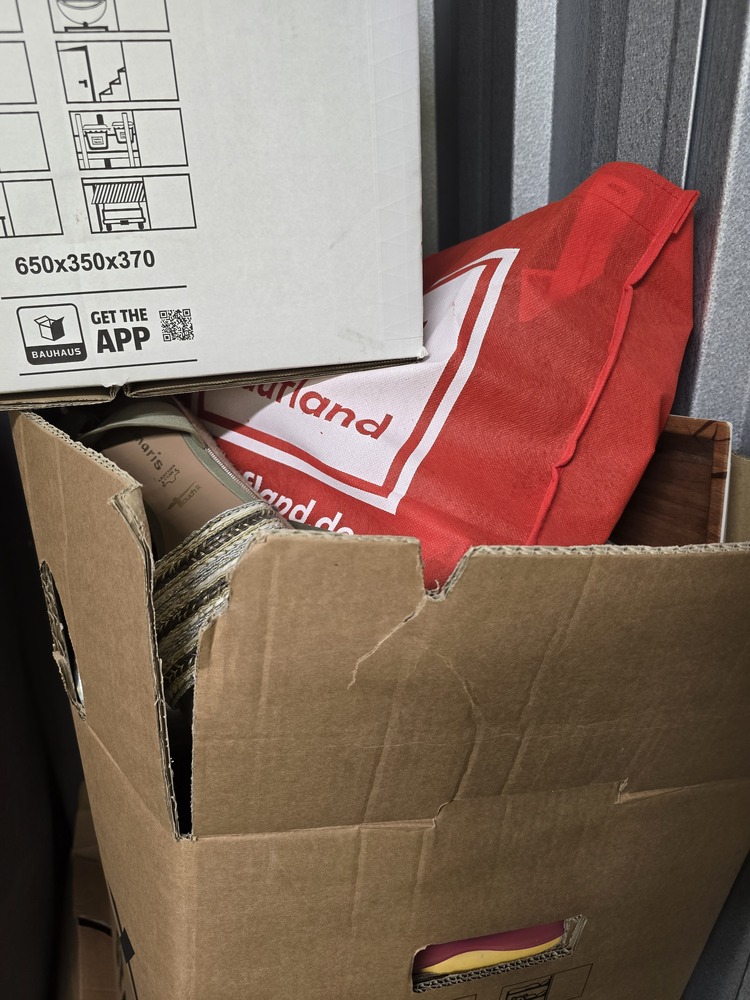 Kartons, Möbel, Kaffemaschine, Taschen, Schuhe