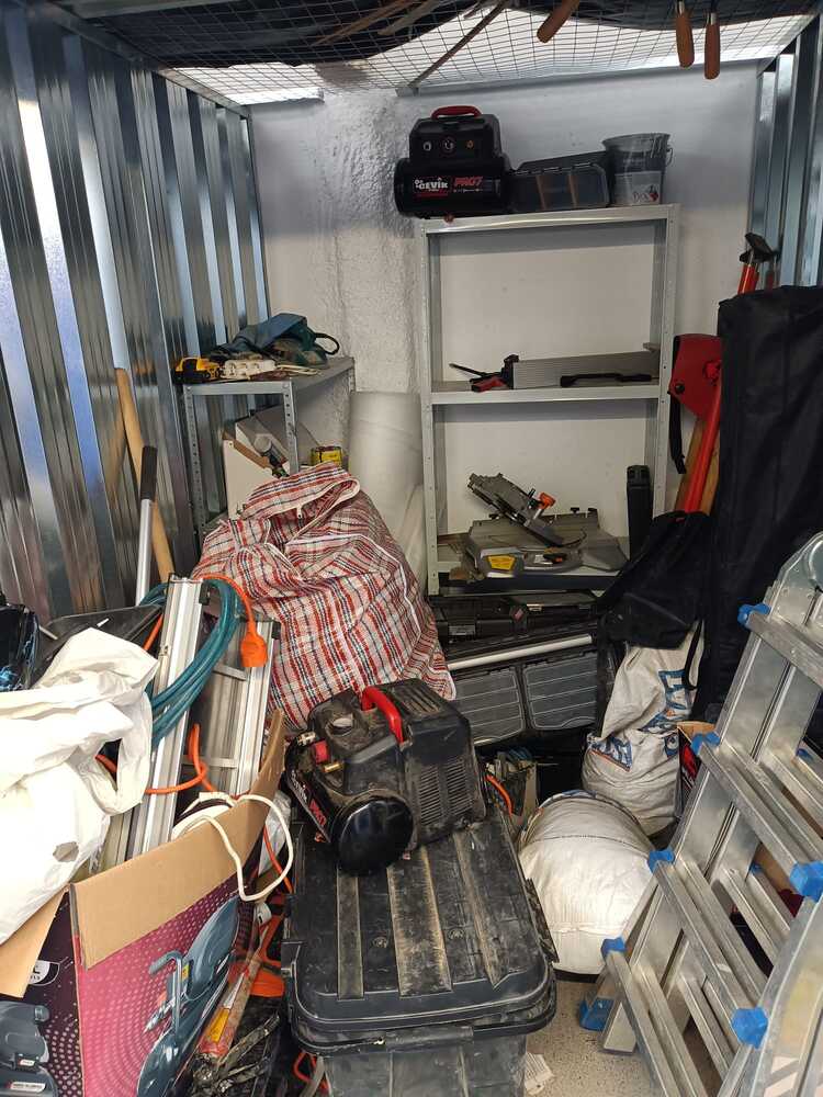 Trastero de 3,5m2 con herramientas y material de obra