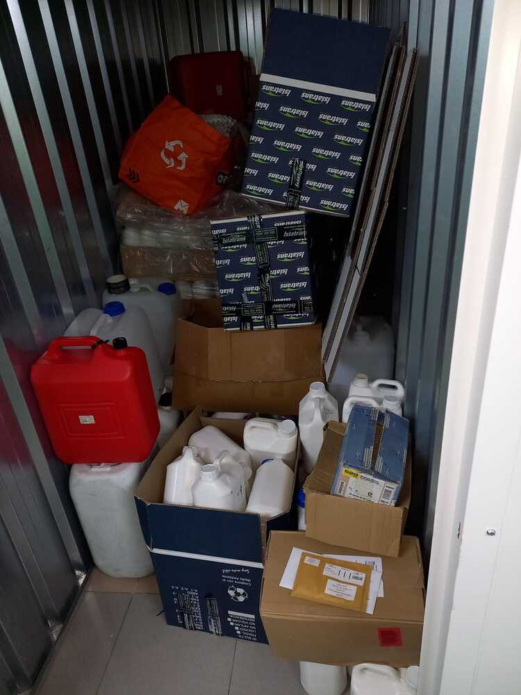 Garrafas de diversos tamaños, botes ambientadores, cajas