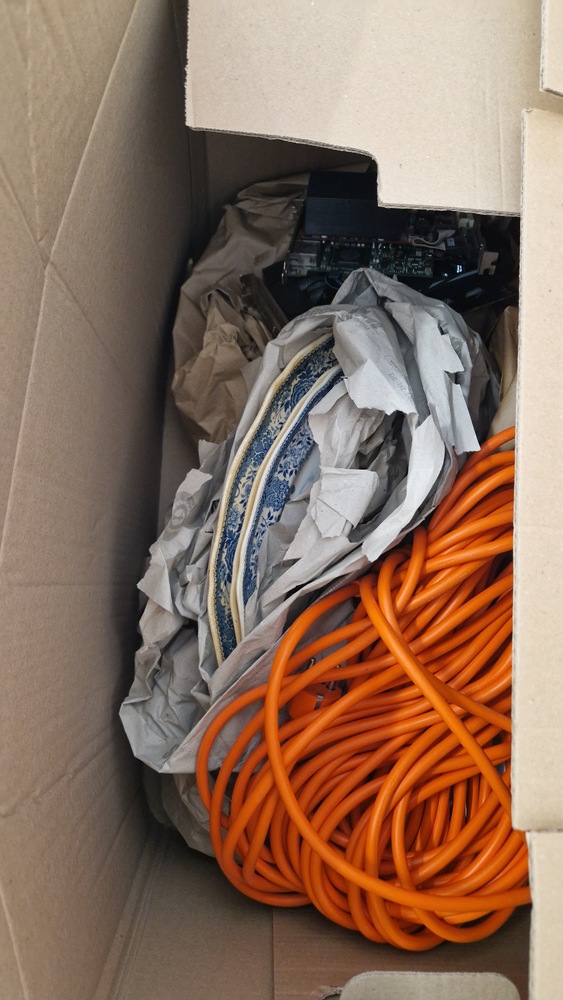Geschirr, Schuhe, Festplatten, Kabel, diverses