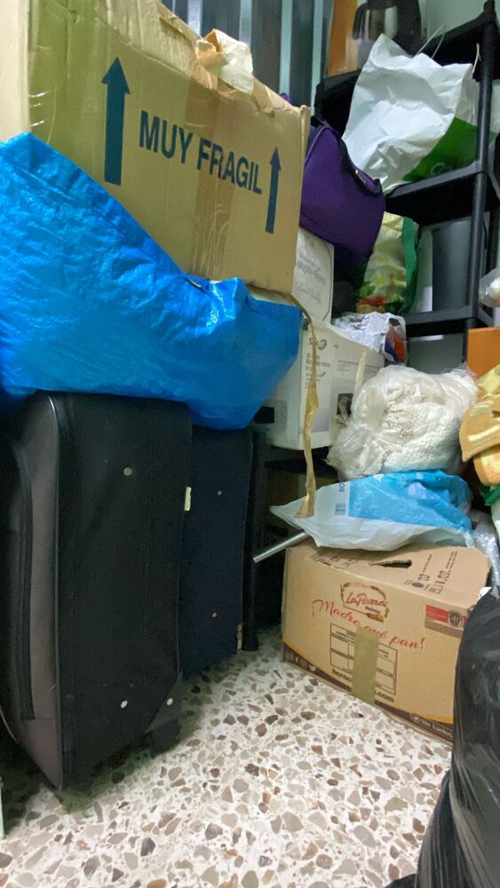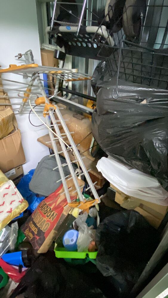 Maletas, antena, cajas, maquina de coser antigua, mantas, estantería...