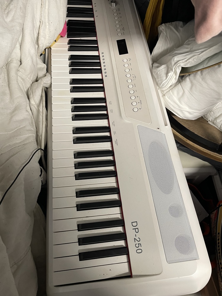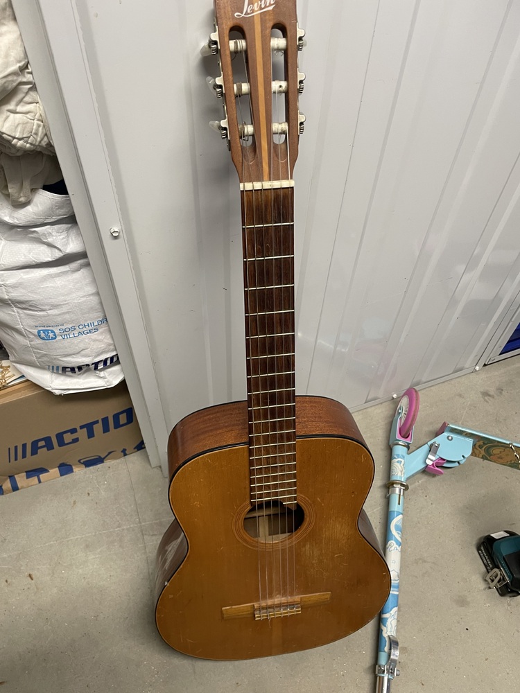 In de unit liggen persoonlijke spullen opgeslagen zoals een electrisch keyboard, step, schilderij. gitaar en kleding