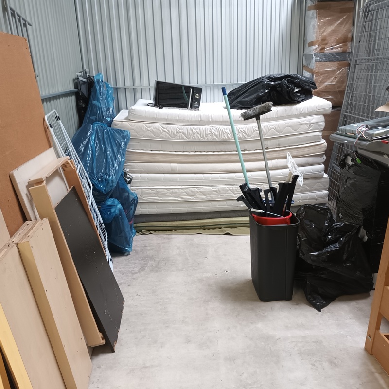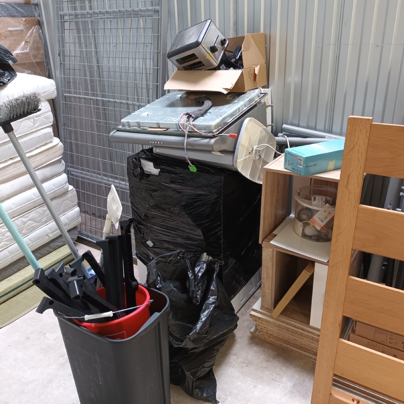 Matratzen, Metallbetten, Waschmaschine, Dunstabzugshaube, schwarze Säcke unbekannten Inhalts, Mikrowelle, verschiedene Möbelstücke, keine Gewähr für die Funktionalität der Geräte!