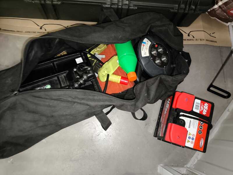 Sacos com roupa; Ferramentas variadas; Malas com ferramentas Bags with clothes; Various tools; Toolboxes