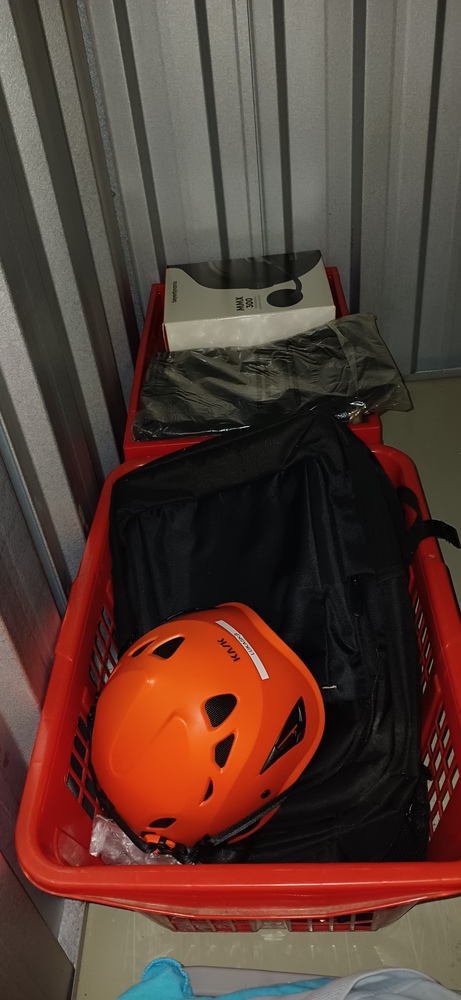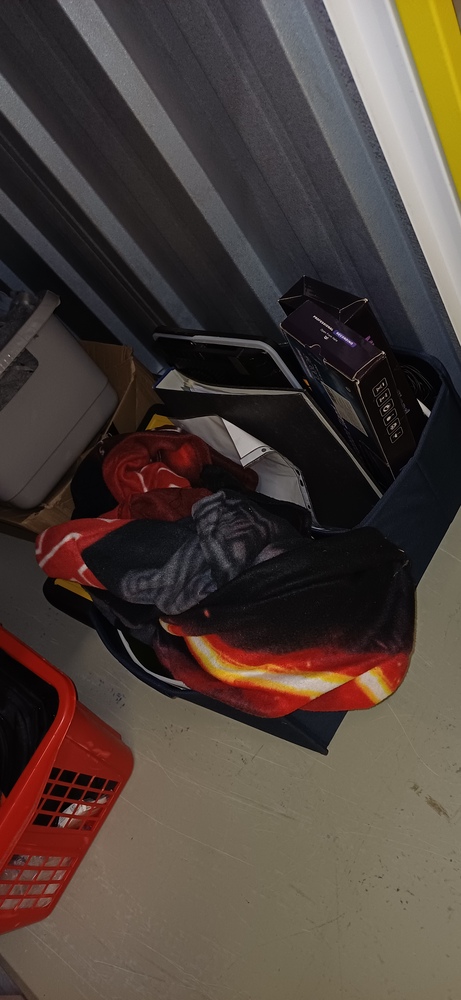 Hey der Sichtung der Box wurden folgende Gegenstände festgestellt: - 2 Körbe mit Kleidung - Werkzeugkoffer - 3 Kisten aus Plaste - verschiedene Elektronik - Sachen für Kletterbedarf