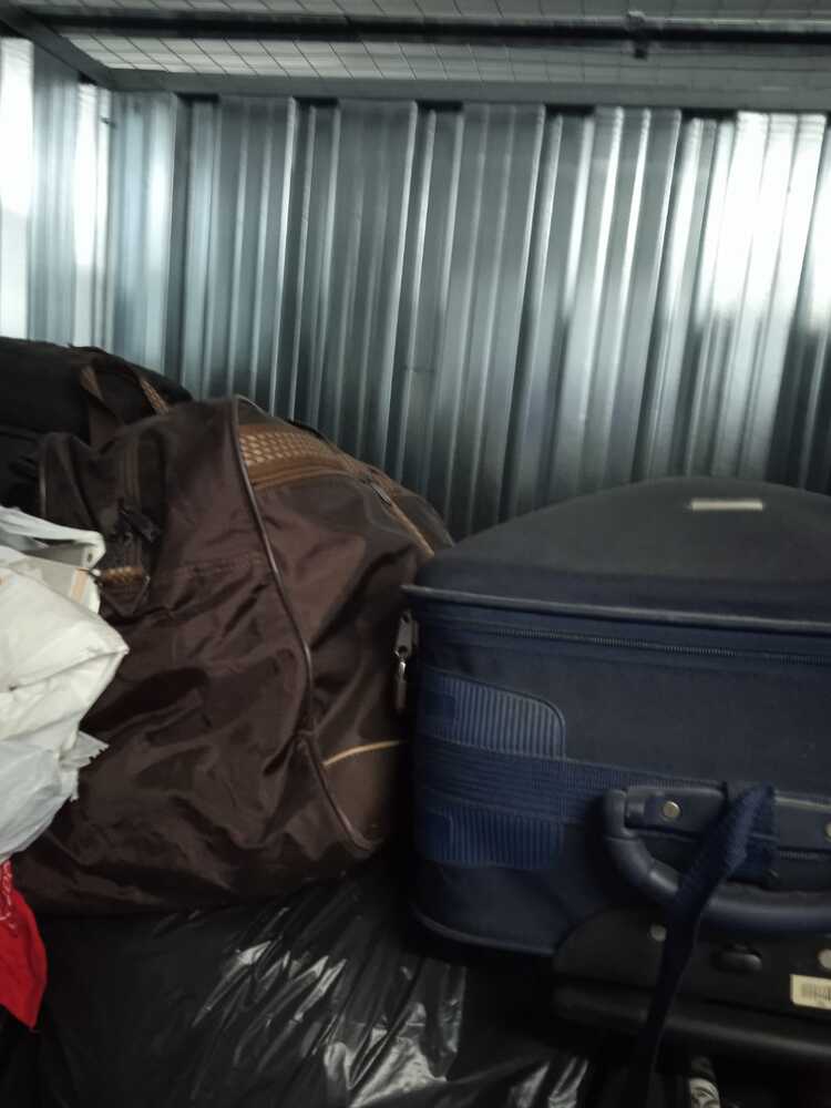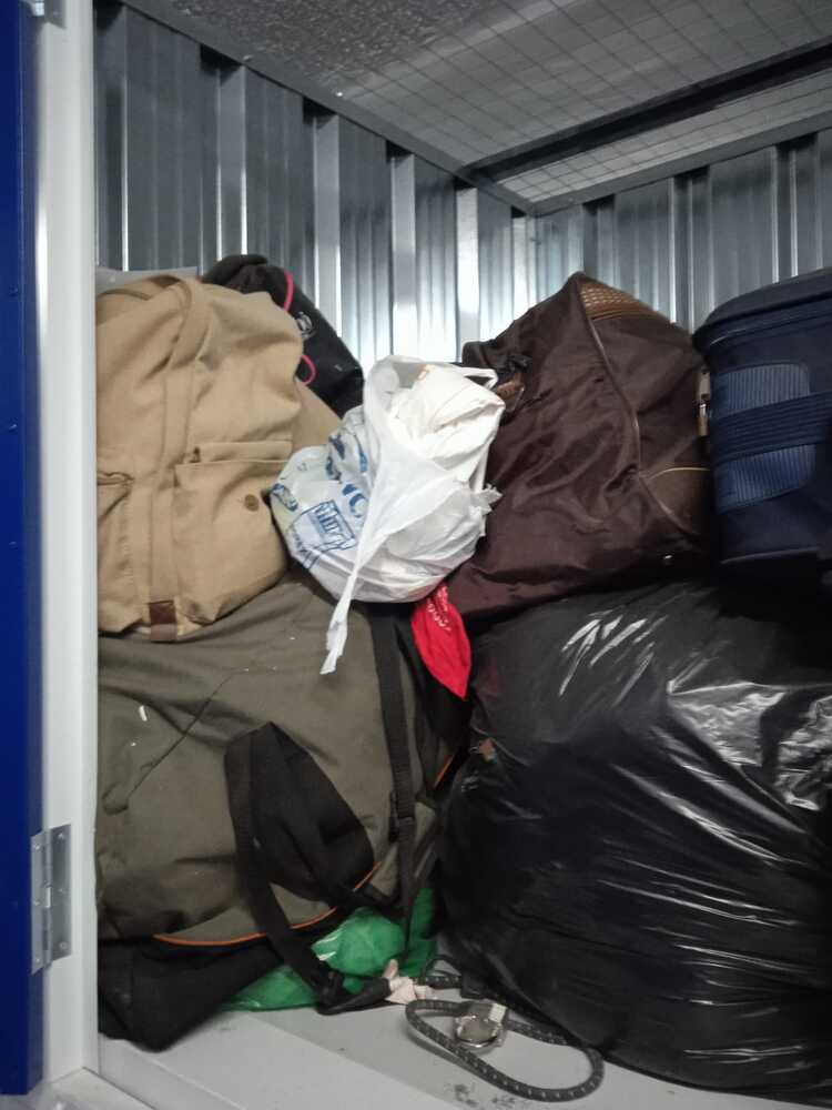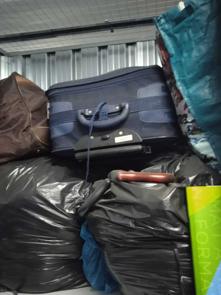 Trastero con varias bolsas, cajas y maletas
