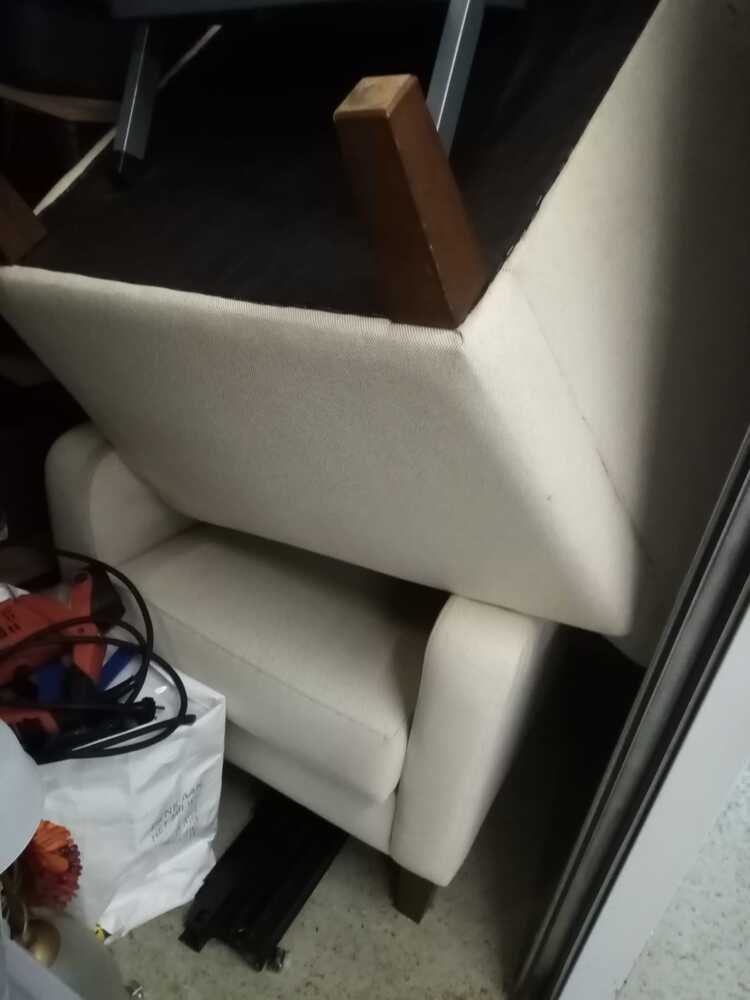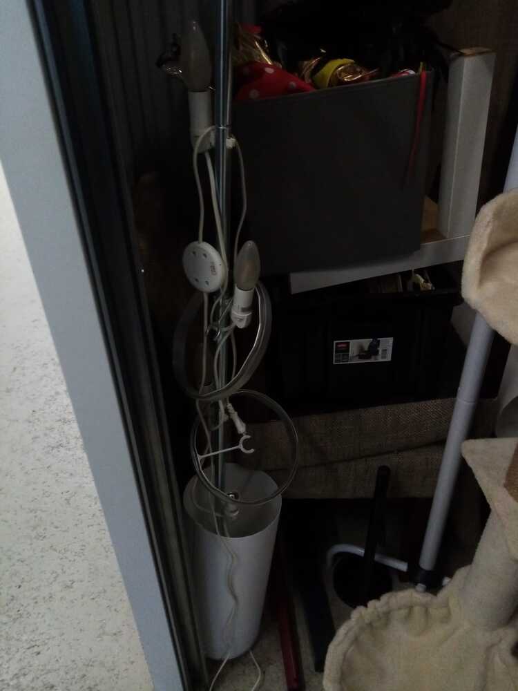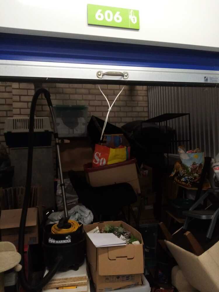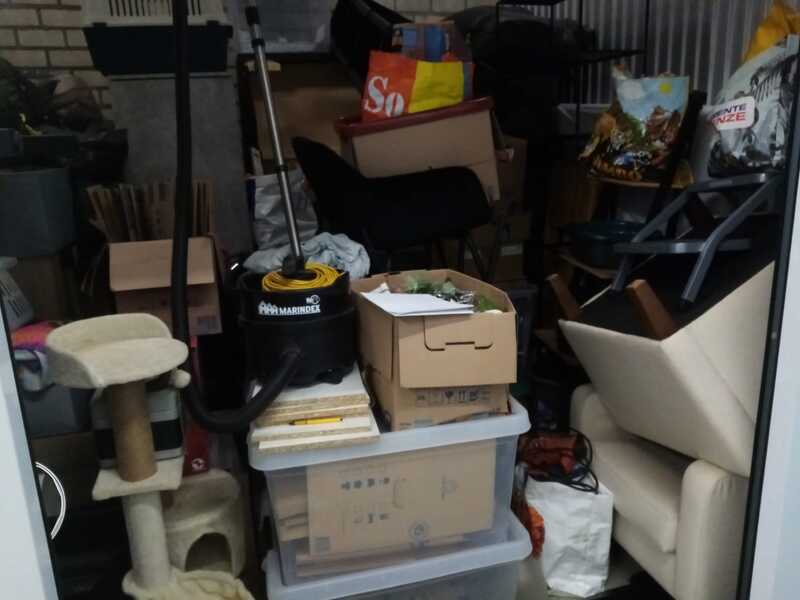 • Marmelex stofzuiger en Sauber stofzuiger • Toolson boormachine • Twee beige stoffen fauteuils • Vier eetkamerstoelen • Kattenkrabpaal en vervoersmandjes • Twee motorhelmen • Eettafel met houten blad • Twee LCD-schermen • TV-wandsteun • Steekwagen • Tweezitsbank • Vloerkleed • Glazen hanglamp • Staande lamp • Bijzettafel • Diverse zakken met kleding • Handdoeken • Beddenlinnen • Wasmanden • Drie kuipstoelen • Reiskoffer • Wasrek • Diverse handgereedschappen
