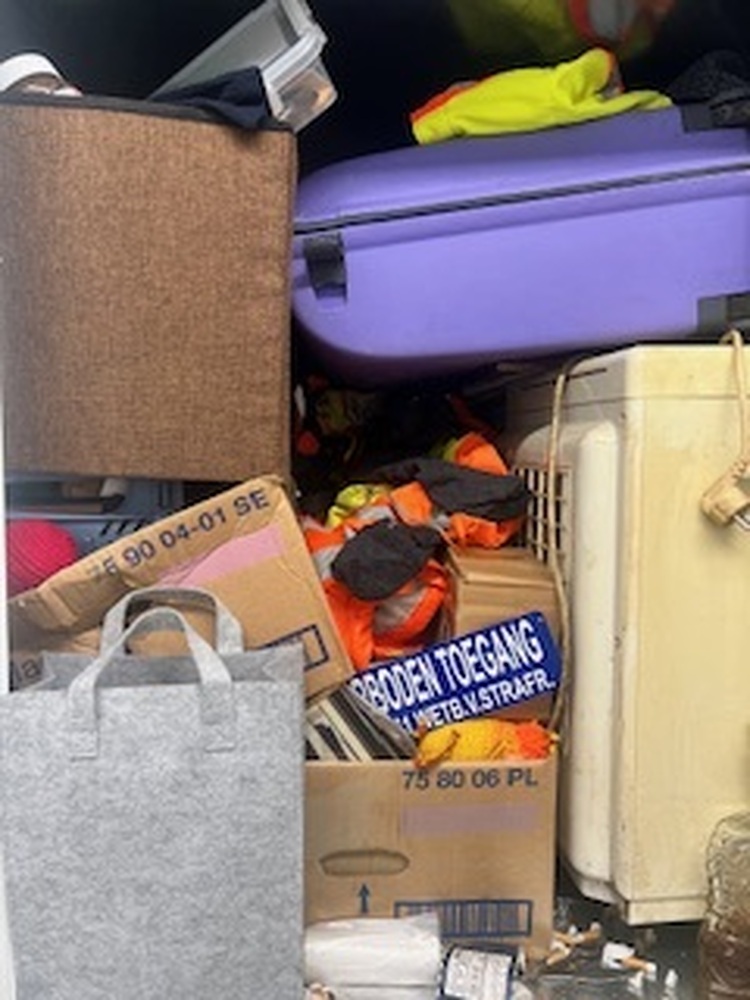 Koffer en dozen met spullen.